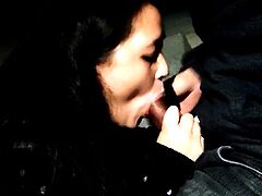 Public blowjob from an amateur brunette babe in POV video
